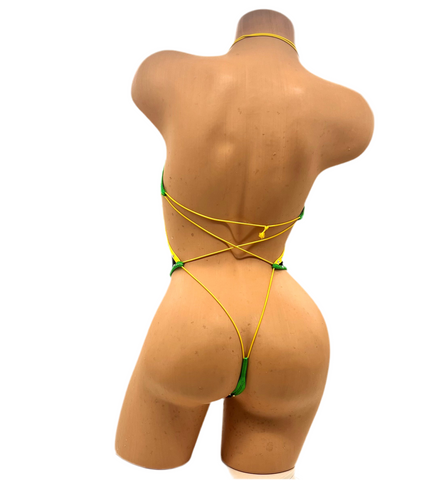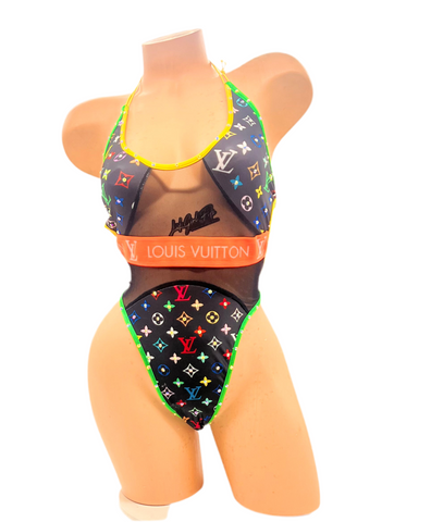 Transform into a sultry goddess with "Lacey"! This one-piece features a weight stretch design, sheer mesh string back, and spandex material for a comfortable and sexy fit. Adorned with stunning AB Swarovski crystals, you'll shine bright all night. Elevate your look and feel confident in "Lacey"!